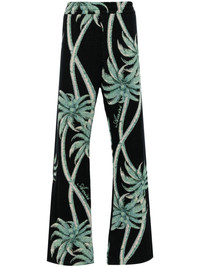 palm tree-print knitted trousers Highlights - Black/multicolour - Cotton - Knitted construction - Palm tree print - Logo patch to the rear - Elasticated waistband with internal drawstring - Two side inset pockets - Rear patch pocket - Side press-stud fastening - Pull-on style Made in United States Composition Cotton 100%, Lyocell 100% SIZE & FIT Model measurements Height 6 ft 2 in(1.87 m) Bust/Chest 36.41 in(92.5 cm) Hips 35.43 in(90 cm) Waist 29.52 in(75 cm) FittingInformation Designed for a straight-leg, allowing for an unrestricted and comfortable fit over the leg Adjust this piece’s waistband to your preference using the drawstring Made from a midweight non-stretch fabric This piece fits true to size – take your usual size
