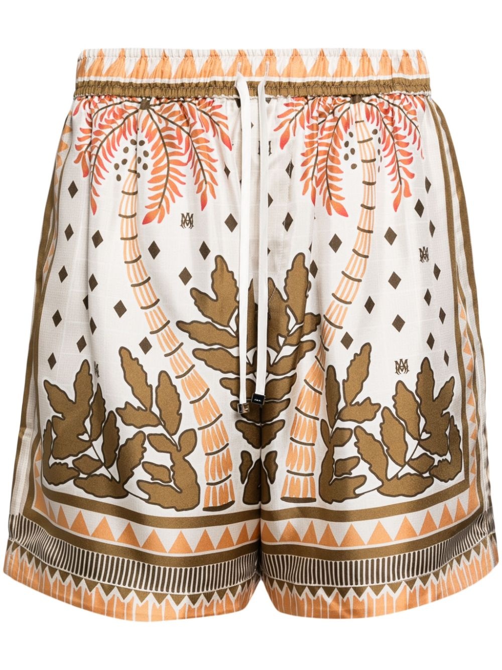 Palm Tree silk shorts Highlights - Multicolour - Silk - Abstract pattern print - Elasticated drawstring waistband - Thigh-length Made in United States Composition Silk 100% SIZE & FIT Measurement FRONT RISE 12.59 in(32 cm) INSIDE LEG 6.69 in(17 cm) HIPS 47.24 in(120 cm)