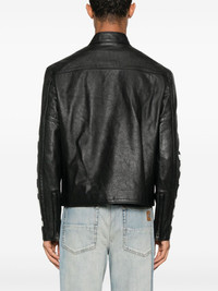 patch-detail jacket Highlights - Black - Front two-way zip fastening - Two side zip-fastening pockets - Cuff zips - Logo print at the sleeve Imported Composition Lining: Viscose 100% Outer: Bovine Leather 100% SIZE & FIT Model measurements Height 6 ft 2 in(1.87 m) Bust/Chest 38.18 in(97 cm) Hips 36.61 in(93 cm) Waist 29.13 in(74 cm) FittingInformation Designed for a relaxed fit, this piece allows for comfort and movement when worn Firm leather offering little flexibility to maintain its durability and sturdiness