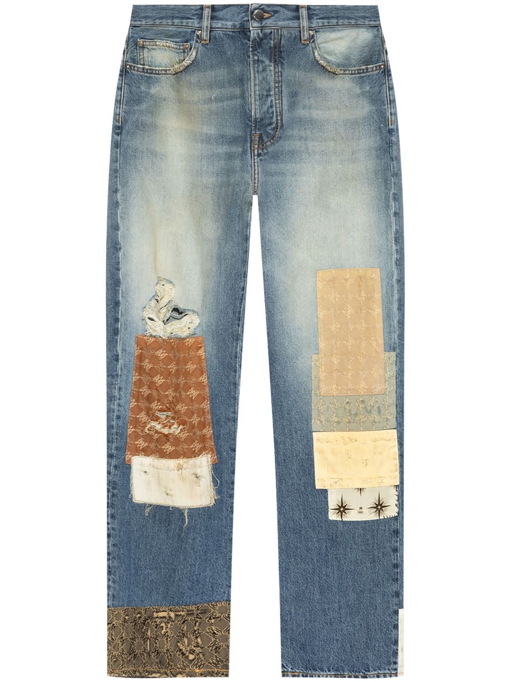 patchwork straight-leg jeans