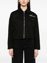 pearl embellishmet denim jacket Highlights - Black - Cotton - Denim - Classic collar - Front zip fastening - Embroidered logo at the chest - Zip-fastening chest pocket - Two side zip-fastening pockets - Faux-pearl embellishment - Rhinestone embellishment - Embroidered motif - Drop shoulder - Long sleeves - Straight hem Made in Italy Composition Lining: Viscose 100% Outer: Cotton 100% SIZE & FIT Model measurements Height 5 ft 11 in(1.8 m) Bust/Chest 31.1 in(79 cm) Hips 36.22 in(92 cm) Waist 25.98 in(66 cm) FittingInformation Designed for a boxy fit, intended for a loose fit throughout The elasticated hem allows for movement and a comfortable fit Made from a midweight non-stretch fabric This piece fits true to size – take your usual size