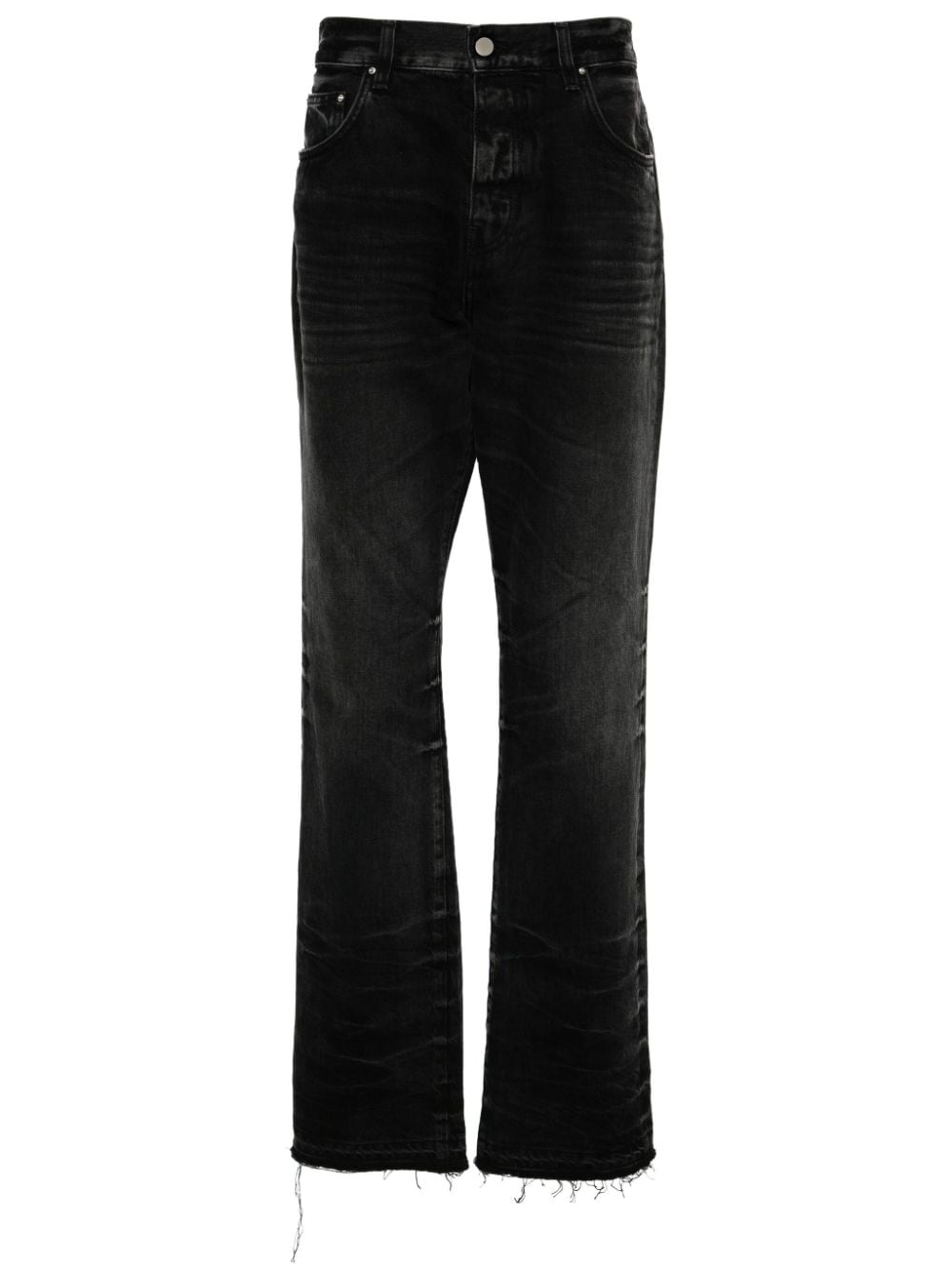 Release Hem straight-leg jeans Cut to a straight-leg silhouette, these relaxed AMIRI jeans are complete with frayed edges. Highlights - Black - Cotton - Denim - Stonewashed - Faded effect - Button fly fastening - Logo-debossed buttons - Classic five pockets - Logo patch to the rear - Whiskering effect at the thighs - Straight leg - Frayed edge Made in United States Composition Cotton 100% SIZE & FIT Model measurements Height 6 ft 2 in(1.87 m) Bust/Chest 36.41 in(92.5 cm) Hips 35.43 in(90 cm) Waist 29.52 in(75 cm) FittingInformation Designed with a straight leg, these jeans allow for an unrestricted and comfortable fit over the leg Sturdy and hard-wearing, this denim piece offers no stretch This piece fits true to size – take your usual size Washing instructions Dry Clean Only