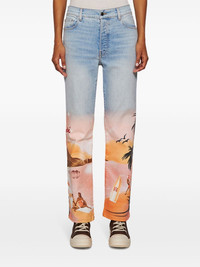 Resort Club straight jeans Highlights - Powder blue/flamingo pink - Cotton - Front button fastening - All-over graphic print - Logo patch to the rear - Belt loops - Classic five pockets - Straight leg Imported Composition Cotton 100%