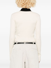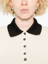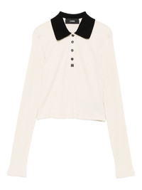 ribbed-knit polo top Highlights - White - Ribbed knit - Long sleeves - Polo collar - Button fastening - Black collar Made in Italy Composition Cotton 94%, Elastane 6% SIZE & FIT Model measurements Height 5 ft 9 in(1.75 m) Bust/Chest 34.64 in(88 cm) Hips 36.61 in(93 cm) Waist 26.37 in(67 cm) Washing instructions Dry Clean Only