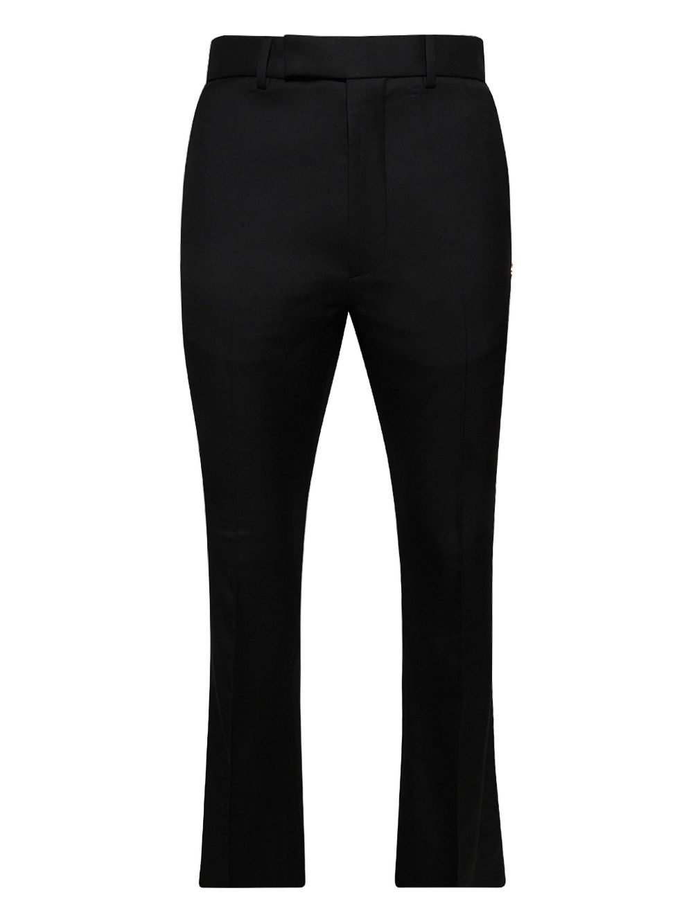 satin-finish trousers Highlights - Black - Straight leg - Belt loops - Button fly - Welt pockets Imported Composition Fabric 100% Washing instructions Read Manufacturer Guidelines