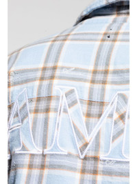 Shotgun shirt Highlights - Light blue - Cotton - Plaid check pattern - Front button fastening - Applique logo - Straight-point collar - Two chest patch pockets - Long sleeves - Frayed hem Made in United States Composition Cotton 100% SIZE & FIT Measurement CHEST 44.09 in(112 cm) SLEEVE LENGTH 35.43 in(90 cm) LENGTH 29.13 in(74 cm)