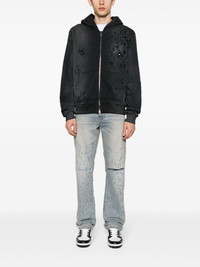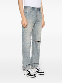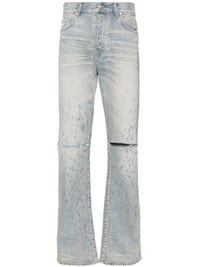Shotgun straight-leg jeans AMIRI says the frayed holes on its Shotgun jeans ‘continue the house's exploration of material distortion through a specialized battle-worn treatment.’ They’re cut from faded Italian denim to a straight-leg profile. Highlights - Blue - Cotton - Denim - Stonewashed - Faded effect - Ripped detailing - Whiskering effect at the thighs - Classic five pockets - Logo patch to the rear - Logo-debossed buttons - Straight leg - Button fly fastening Made in United States Composition Cotton 100% SIZE & FIT Model measurements Height 6 ft 2 in(1.87 m) Bust/Chest 36.41 in(92.5 cm) Hips 35.43 in(90 cm) Waist 29.52 in(75 cm) FittingInformation Designed with a straight leg, these jeans allow for an unrestricted and comfortable fit over the leg Sturdy and hard-wearing, this denim piece offers no stretch This piece fits true to size – take your usual size Washing instructions Dry Clean Only