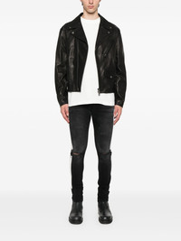 Slash jeans Highlights - Black - Front button and zip fastening - Classic five pockets - Belt loops - Skull applique Made in United States Composition Cotton 92%, Elastomultiester 6%, Elastane 2% SIZE & FIT Model measurements Height 6 ft 2 in(1.88 m) Bust/Chest 37.4 in(95 cm) Hips 38.58 in(98 cm) Waist 31.1 in(79 cm) FittingInformation Designed for a skinny fit, these jeans offer a close fit throughout Constructed from stretch denim, this piece offers a stretch fit with durability Washing instructions Do Not Wash/Do Not Dry Clean