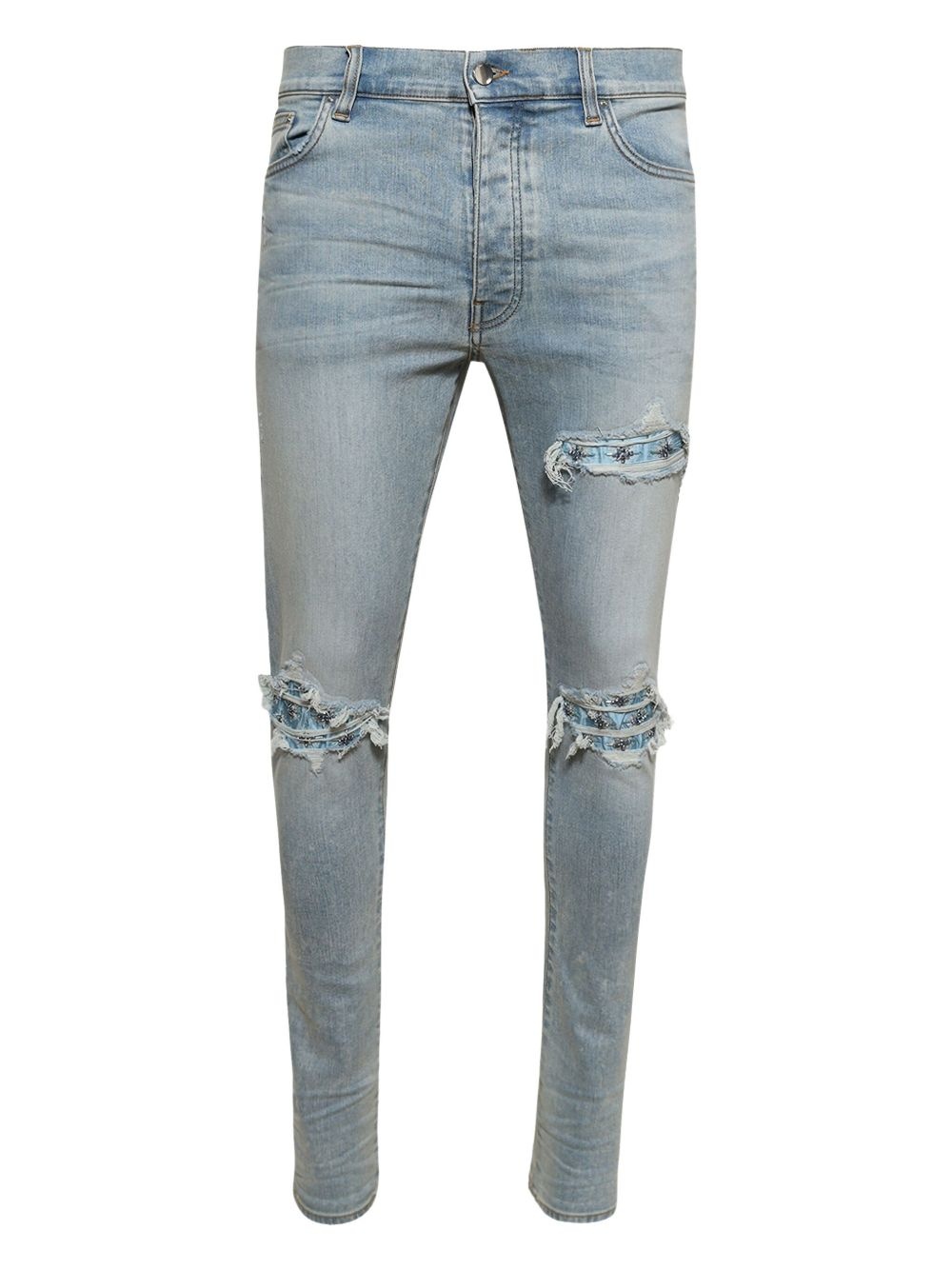 Starburst MX1 jeans Highlights - Light blue - Front button fastening - Belt loops - Classic five pockets - Distressed effect Made in United States Composition Cotton 92%, Elastomultiester 6%, Elastane 2%