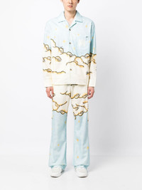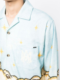 Sunscape-print cotton shirt Renowned for its rock n' roll aesthetic, LA brand AMIRI goes against the grain with this Sunscape shirt for SS23. Cut from soft cotton, the long-sleeved style boasts a cloudy graphic below sparkling stars, for a dream-like aesthetic. Highlights - Blue/multicolour - Cotton - All-over graphic print - Bowling collar - Long sleeves - Button cuffs - Front button fastening - Chest patch pocket - Monogram print at chest - Straight hem Made in United States Composition Cotton 100% SIZE & FIT Model measurements Height 6 ft 2 in(1.87 m) Bust/Chest 34.25 in(87 cm) Hips 36.22 in(92 cm) Waist 29.52 in(75 cm) FittingInformation Designed to be unstructured, offering a loose fit throughout Made from a midweight non-stretch fabric This piece fits true to size – take your usual size Measurement CHEST 47.24 in(120 cm) SLEEVE LENGTH 35.82 in(91 cm) LENGTH 29.13 in(74 cm) Washing instructions Dry Clean Only