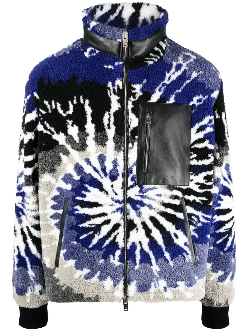 tie-dye fleece zip-up jacket Crafted with a cosy fleece texture, this zip-up jacket from AMIRI is decorated with a bold tie dye print all over and finished with a black lambskin trim. Made in Italy Composition Outer: Lamb Skin 100%, Acrylic 53%, Polyester 47% Lining: Viscose 100% SIZE & FIT Model measurements Height 6 ft 2 in(1.88 m) Bust/Chest 36.22 in(92 cm) Hips 38.58 in(98 cm) Waist 29.52 in(75 cm) FittingInformation This piece fits true to size. We recommend you get your regular size Cut for a loose fit Made with a mid-weight fabric Washing instructions Specialist Cleaning