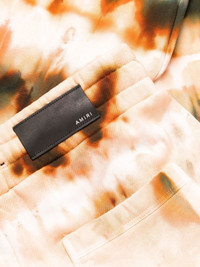tie-dye print cotton track pants Bold streetwear label AMIRI imbues these trousers with its signature exuberant style, patterning the cotton pair with an orange and brown-hued tie dye print. Elasticated drawstrings at the waist and ankles add to their comfort. Made in United States Composition Cotton 100% SIZE & FIT Model measurements Height 6 ft 2 in(1.87 m) Bust/Chest 36.22 in(92 cm) Hips 37.79 in(96 cm) Waist 28.34 in(72 cm) FittingInformation This piece fits true to size. We recommend you get your regular size Designed to be loose over the leg with a fitted waist and hem Made with a mid-weight fabric Washing instructions Machine Wash