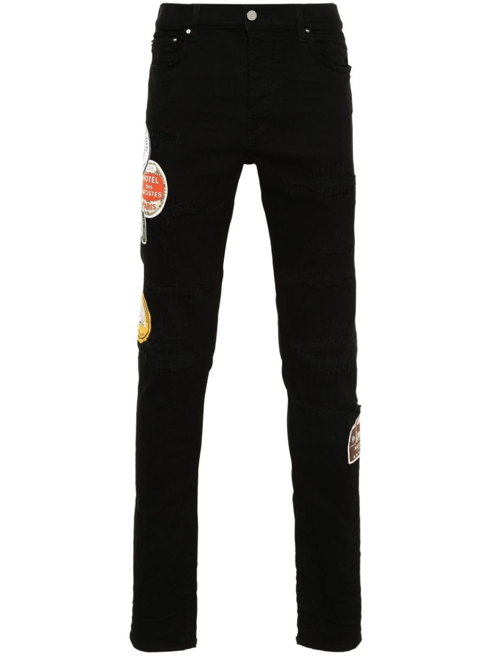 Skinny-Fit Appliquéd Distressed Jeans