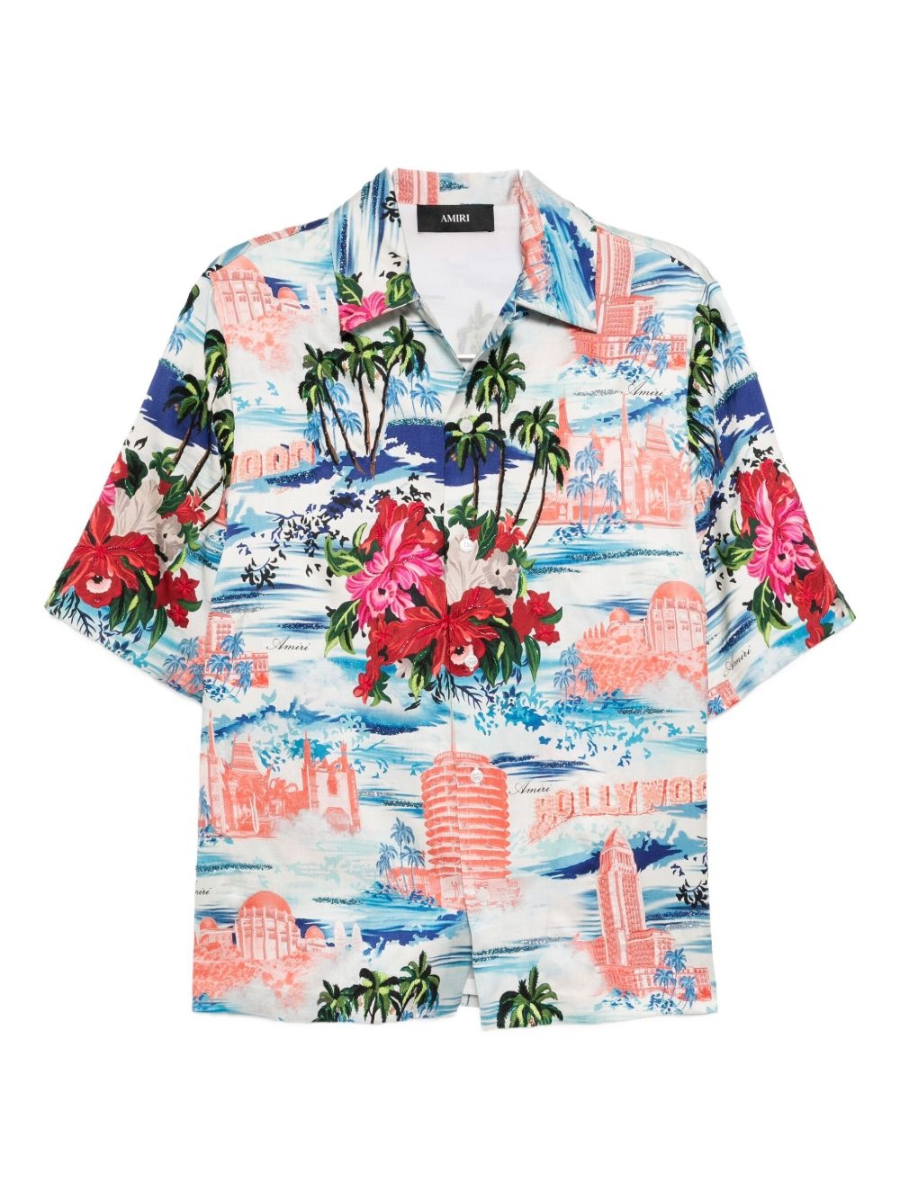 tropical-print short-sleeve shirt Highlights - Blue - Front button fastening - Short sleeves - Bead embellishment Imported Composition Lining: Viscose 100% Outer: Silk 100% SIZE & FIT Model measurements Height 6 ft 2 in(1.87 m) Bust/Chest 31.49 in(80 cm) Hips 37.79 in(96 cm) Waist 27.95 in(71 cm) FittingInformation Designed for a regular fit, allowing for a comfortably loose fit throughout the body Made from a midweight non-stretch fabric Washing instructions Dry Clean Only