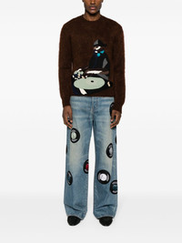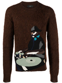 Turn Table-applique jumper AMIRI showcases its affinity for the world of music with this jumper. It’s spun from a mohair blend and stitched with a seasonal Turn Table applique at the front. Highlights - Chocolate brown/multicolour - Mohair blend - Knitted construction - Brushed effect - Applique detail - Crew neck - Drop shoulder - Long sleeves - Ribbed cuffs and hem Made in Italy Composition Mohair 35%, Alpaca 35%, Polyamide 30% SIZE & FIT Model measurements Height 6 ft 2 in(1.89 m) Bust/Chest 39.76 in(101 cm) Hips 37.4 in(95 cm) Waist 29.92 in(76 cm) FittingInformation Designed for a relaxed fit, this piece allows for comfort and movement when worn Made with a midweight knit, this piece offers some stretch This piece fits true to size – take your usual size Measurement CHEST 42 in(106.7 cm) SLEEVE LENGTH 27.51 in(69.9 cm) LENGTH 25.98 in(66 cm) WAIST 37.99 in(96.5 cm) Shoulder Width 20 in(50.8 cm)
