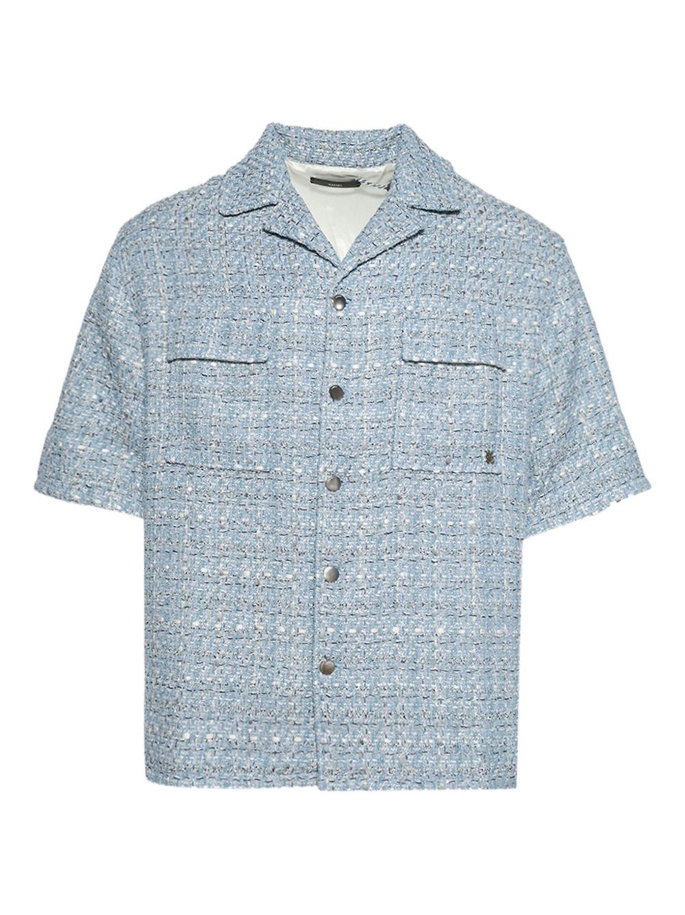 tweed shirt Highlights - Light blue - Tweed texture - Short sleeves - Camp collar - Button fastening - Flap pockets Imported Composition Fabric 100% Washing instructions Read Manufacturer Guidelines
