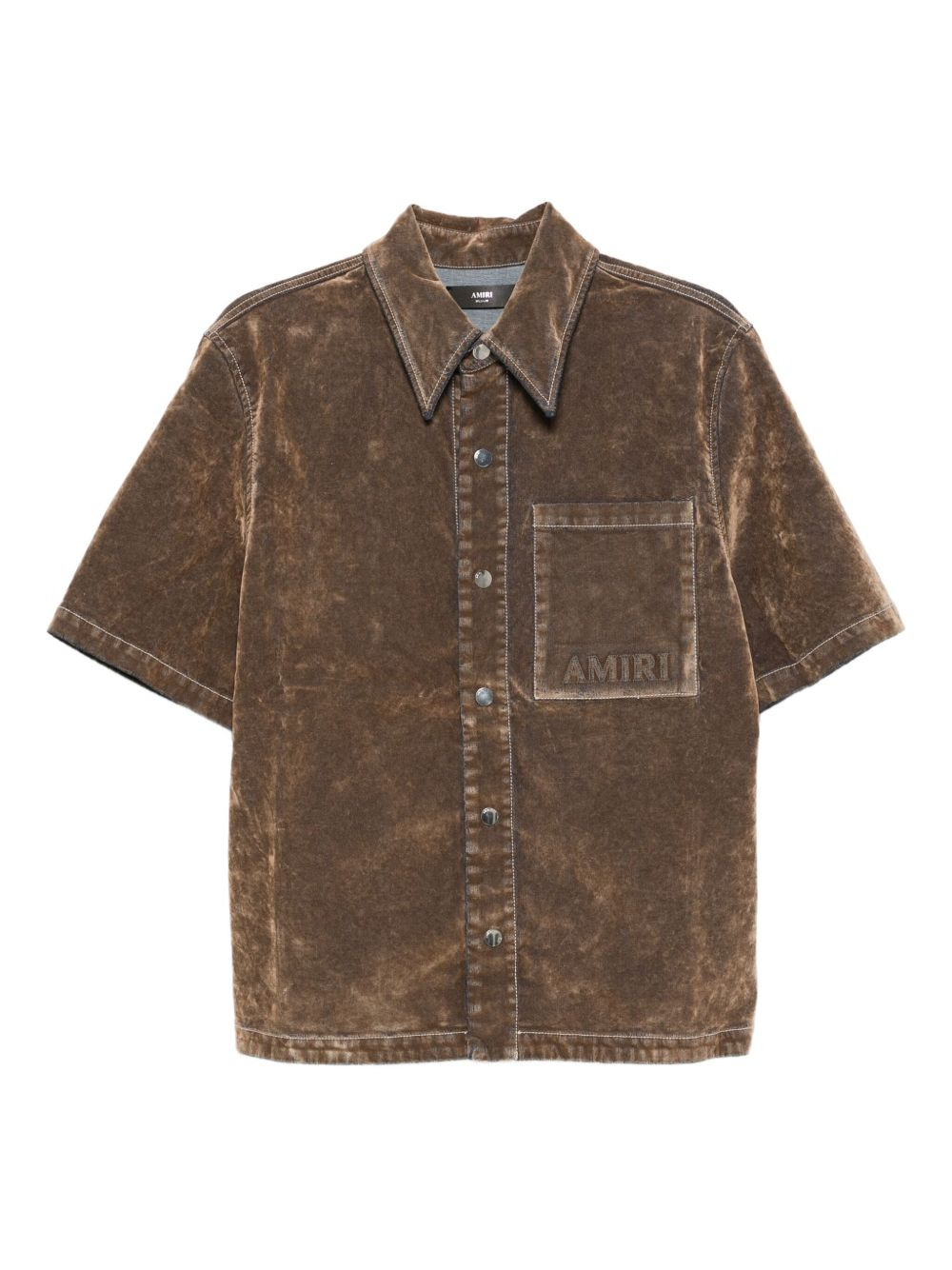 velvet patch-pocket shirt Highlights - Brown - Velvet texture - Short sleeves - Button fastening - Patch pocket - Embroidered logo Made in Italy Composition Cotton 67%, Polyester 21%, Polyurethane 6%, Viscose 4%, Elastane 2% SIZE & FIT Model measurements Height 6 ft 1 in(1.85 m) Bust/Chest 38.58 in(98 cm) Hips 37 in(94 cm) Waist 30.31 in(77 cm) Washing instructions Read Manufacturer Guidelines
