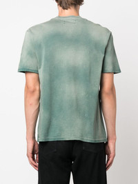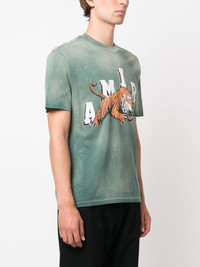 Vintage Tiger short-sleeve T-shirt Inspired by the rebellious California lifestyle, AMIRI adorns this crewneck T-shirt for AW23 with a bold logo and tiger print at the front. The graphic detailing stands out against a faded green background. Highlights - Jade green/multicolour - Cotton - Faded effect - Logo print to the front - Tiger print - Round neck - Short sleeves - Straight hem Made in United States Composition Cotton 100% SIZE & FIT Model measurements Height 6 ft 1 in(1.85 m) Bust/Chest 35.43 in(90 cm) Hips 35.82 in(91 cm) Waist 27.55 in(70 cm) Measurement CHEST 40.15 in(102 cm) SLEEVE LENGTH 9.05 in(23 cm) Shoulder Width 18.5 in(47 cm) LENGTH 26.37 in(67 cm) FittingInformation Designed for a slim fit, offering a comfortable fit that sits just away from the body Made from a midweight non-stretch fabric, this piece offers minimal elasticity when worn This piece fits true to size – take your usual size Washing instructions Dry Clean Only
