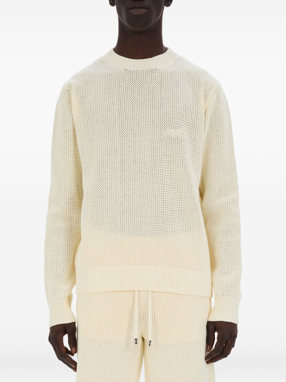 waffle-knit crew-neck sweater Highlights - Off-white - Waffle knit - Crew neck - Long sleeves - Ribbed cuffs and hem Made in Italy Composition Fabric 100% Washing instructions Read Manufacturer Guidelines