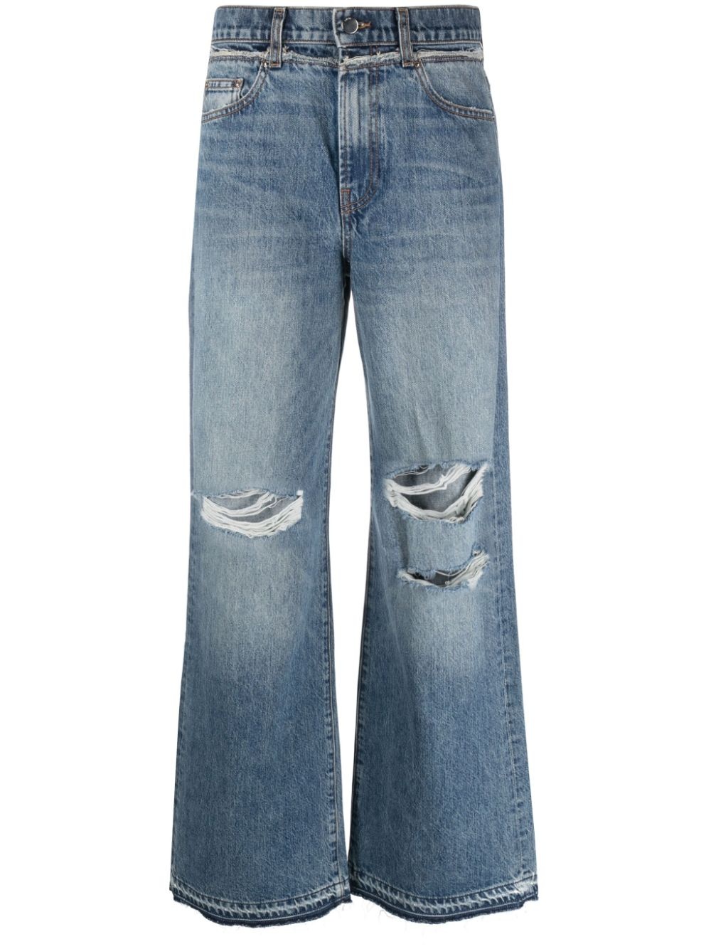 wide-leg cotton jeans Highlights - Navy blue - Cotton - Denim - Belt loops - Distressed finish - Ripped detailing - Wide leg - Button fly fastening - Classic five pockets - Raw-cut edge - Straight hem Made in United States Composition Cotton 100% Washing instructions Dry Clean Only