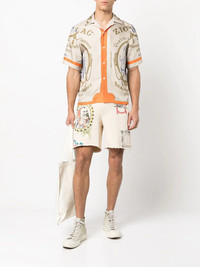 Zig-Zag printed shorts cream white cotton jersey fleece all-over graphic print elasticated drawstring waistband logo patch to the rear two side slit pockets rear patch pocket knee-length Made in United States Composition Body: Cotton 100% Washing instructions Dry Clean Only