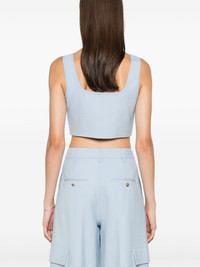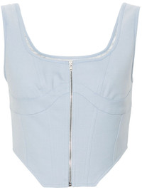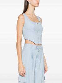 zip-up corset Highlights - Cerulean blue - Twill weave - Front zip fastening - Corset style - U-neck - Sleeveless - Vertical seamed - Satin lining - High-low hem Made in Italy Composition Lining: Viscose 52%, Acetate 48% Outer: Polyester 53%, Wool 43%, Elastane 4% SIZE & FIT Model measurements Height 5 ft 10 in(1.78 m) Bust/Chest 33.85 in(86 cm) Hips 36.61 in(93 cm) Waist 26.77 in(68 cm) FittingInformation Designed for a close fit throughout Cropped in length Made from a midweight fabric