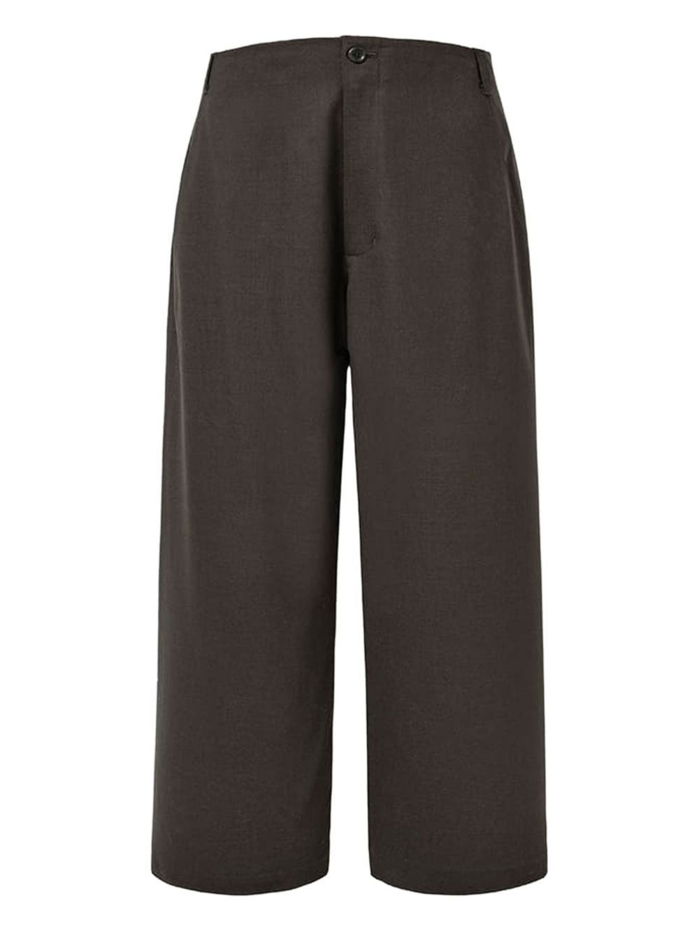 wool wide-leg trousers Highlights - Chocolate brown - Front button and zip fastening - Belt loops - Two side inset pockets - Two rear button-fastening jetted pockets Imported Composition Outer: Wool 50%, Polyester 39%, Zentra 11% Lining: Polyester 100%