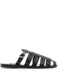 Cosmia slip-on sandals Highlights - Black - Calf leather - Round toe - Slip-on style - Branded footbed - Flat rubber sole Imported Composition Sole: Rubber 100%, Calf Leather 100% Lining: Calf Leather 100% Outer: Calf Leather 100% SIZE & FIT Measurement HEEL 0.59 in(1.5 cm) Sole height 0.39 in(1 cm)