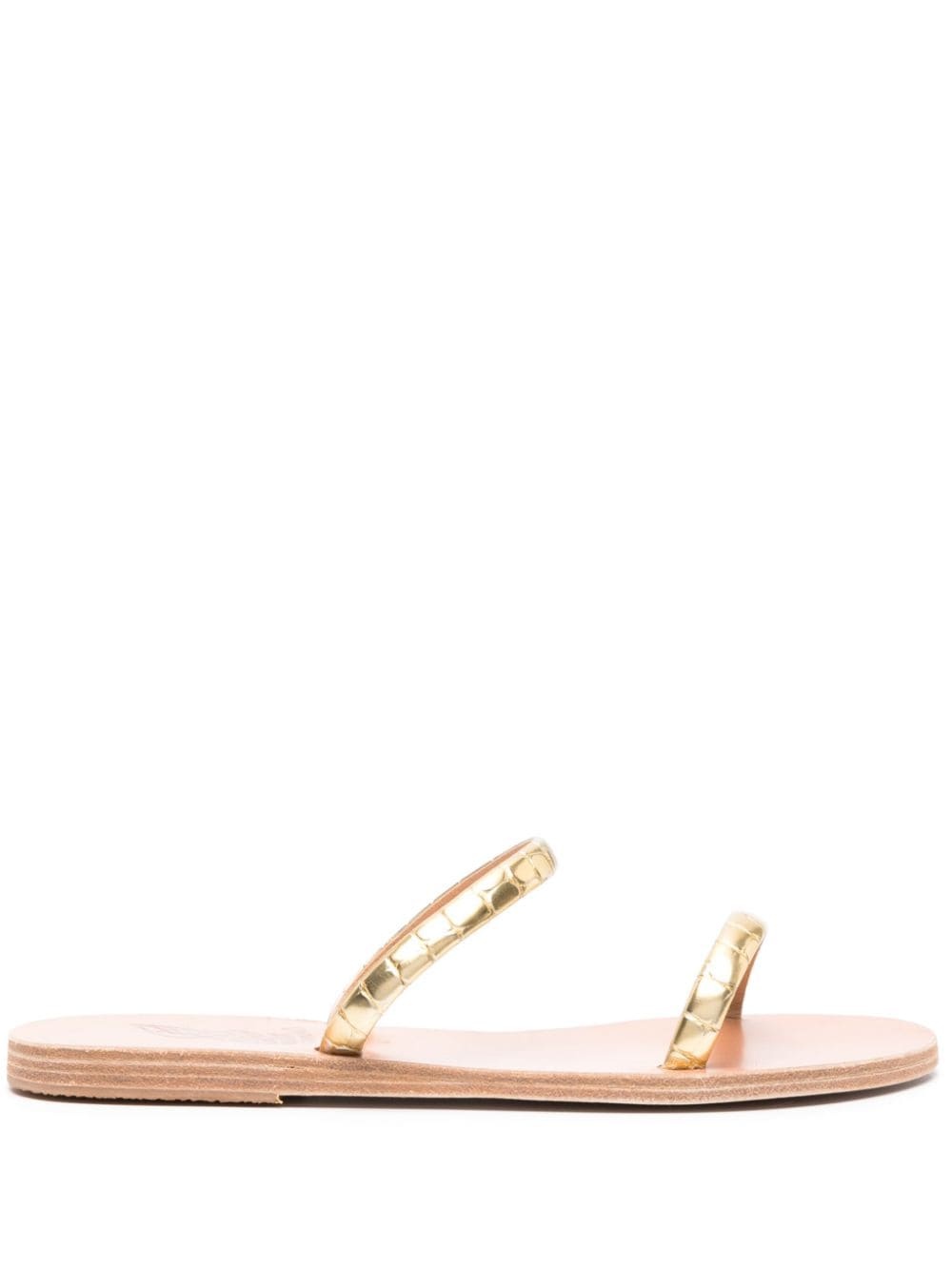 Echidna flat leather sandals gold-tone calf leather open toe slip-on style branded insole flat sole Imported Composition Lining: Calf Leather 100% Sole: Rubber 100%, Calf Leather 100% Outer: Calf Leather 100% SIZE & FIT Measurement HEEL 0.78 in(2 cm) Sole height 0.39 in(1 cm)