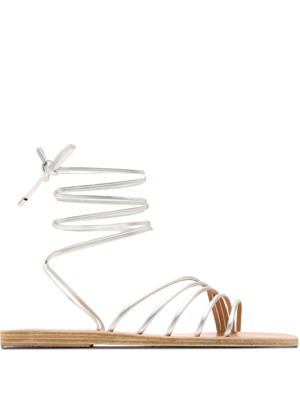 Ipoliti leather lace-up flat sandals Highlights - Silver - Leather straps - Flat sole - Lace-up fastening - Ankle tie Imported Composition Outer: Artificial Leather 100% Lining: Artificial Leather 100% Sole: Rubber 100%
