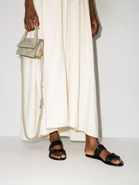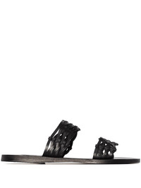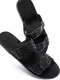 Melia woven leather sandals They usually say if your hair is done properly and you're wearing nice shoes, you can get away with anything. Constructed from black leather, we believe these Ancient Greek Sandals woven sandals will make everything go your way, even if you arrive late to that encounter. How lucky. Highlights - Black - Leather - Interwoven strap detailing - Branded insole - Open toe - Slip-on style - Flat rubber sole Imported Composition Outer: Leather 100% Lining: Leather 100% Sole: Leather 100%, Rubber 100% SIZE & FIT Model measurements Height 5 ft 10 in(1.78 m) Bust/Chest 30.7 in(78 cm) Hips 33.85 in(86 cm) Waist 22.44 in(57 cm) FittingInformation This piece fits small – take one size up