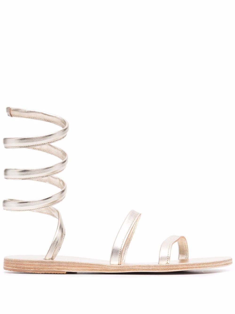 Ofisall wrap-around strap sandals Highlights - Silver-tone - Leather - Metallic effect - Open toe - Branded insole - Flat sole Imported Composition Sole: Rubber 100%, Calf Leather 100% Outer: Calf Leather 100% Lining: Calf Leather 100% SIZE & FIT Measurement CIRCUMFERENCE 9.44 in(24 cm) HEEL 0.39 in(1 cm) HEIGHT 6.29 in(16 cm)