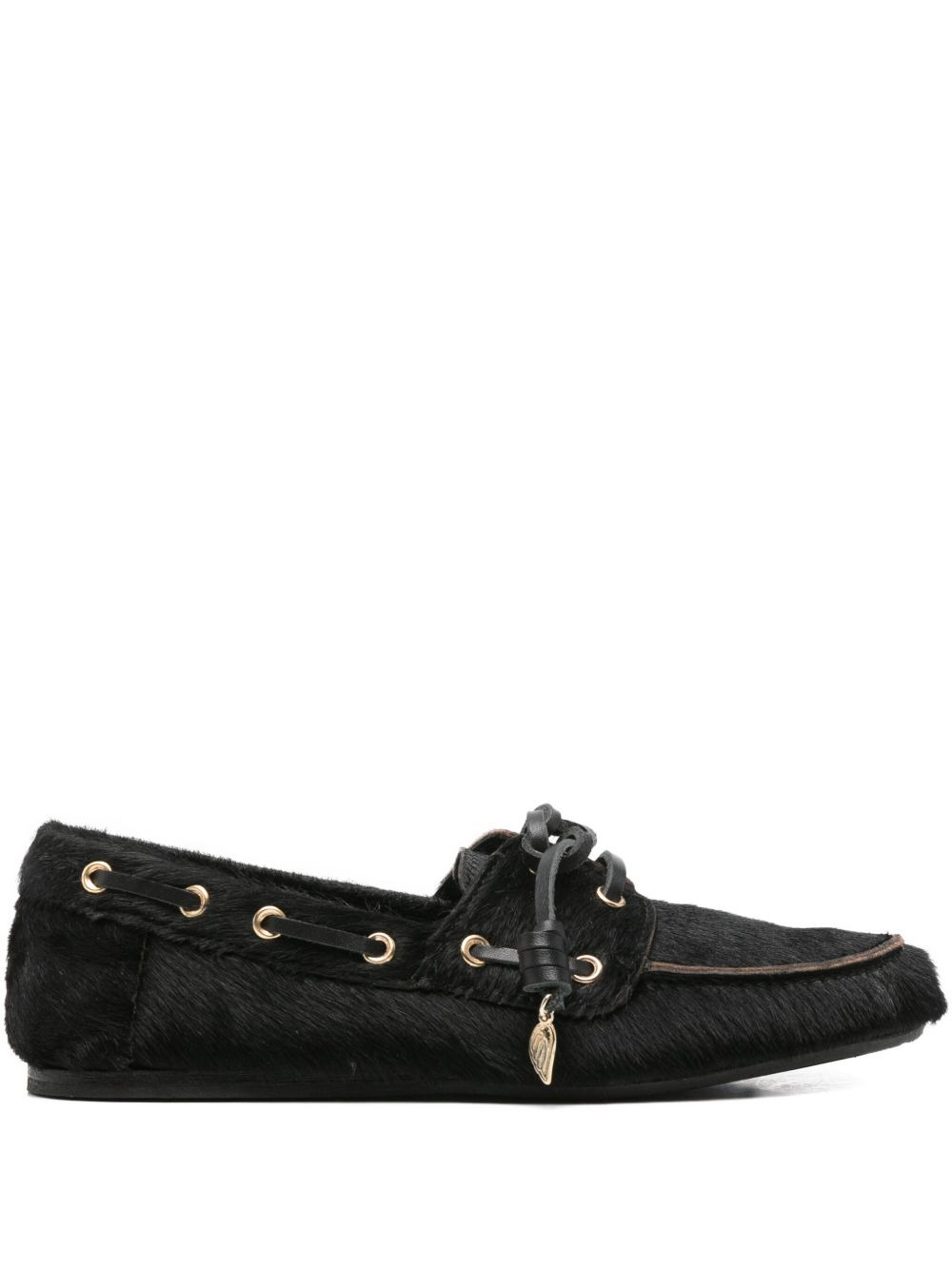 Pliaria lace-up derby shoes Highlights - Black - Lace-up fastening - Gold-tone hardware - Flat sole - Round toe Imported Composition Sole: Rubber 100% Outer: Pony Fur 100% Lining: Calf Leather 100%