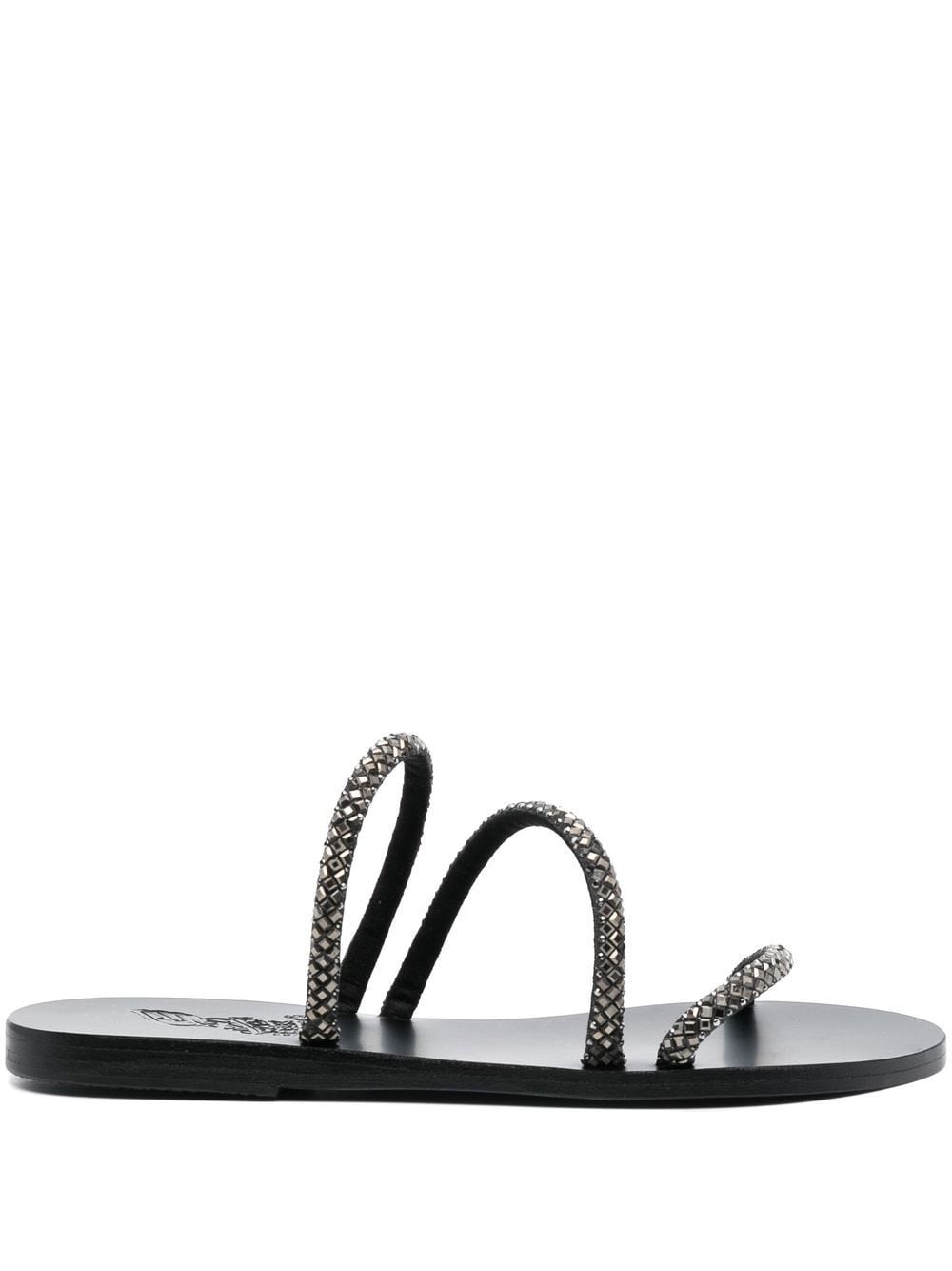 Polytimi crystal-embellished sandals Highlights - Black - Crystal embellishment - Open toe - Slip-on style - Flat sole Imported Composition Outer: Fabric 100%, glass 100% Sole: Rubber 100% Lining: Calf Leather 100% SIZE & FIT Measurement HEEL 0.78 in(2 cm) Sole height 0.39 in(1 cm)