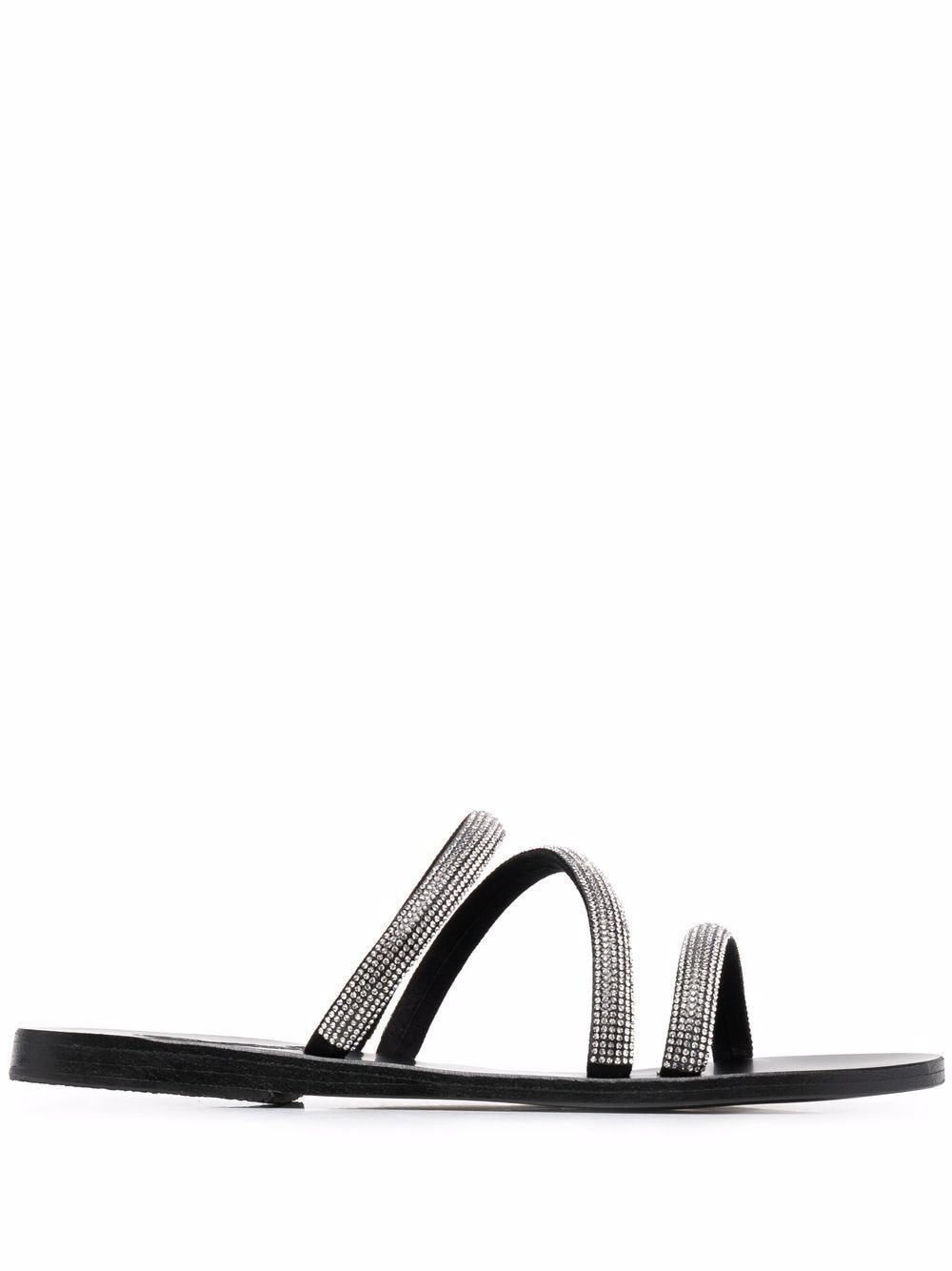 Polytimi Diamante sandals Crafted from black leather and elevated by diamante detailing, the Polytimi style from Ancient Greek Sandals epitomise subtle elegance. Highlights - Black - Leather - Diamante embellishment - Slip-on style - Thin straps - Open toe - Flat sole Imported Composition Outer: Leather 100%, Crystal 100% Lining: Leather 100% Sole: Leather 100%, Rubber 100% SIZE & FIT FittingInformation This piece fits small – take one size up Measurement HEEL 0.39 in(1 cm)