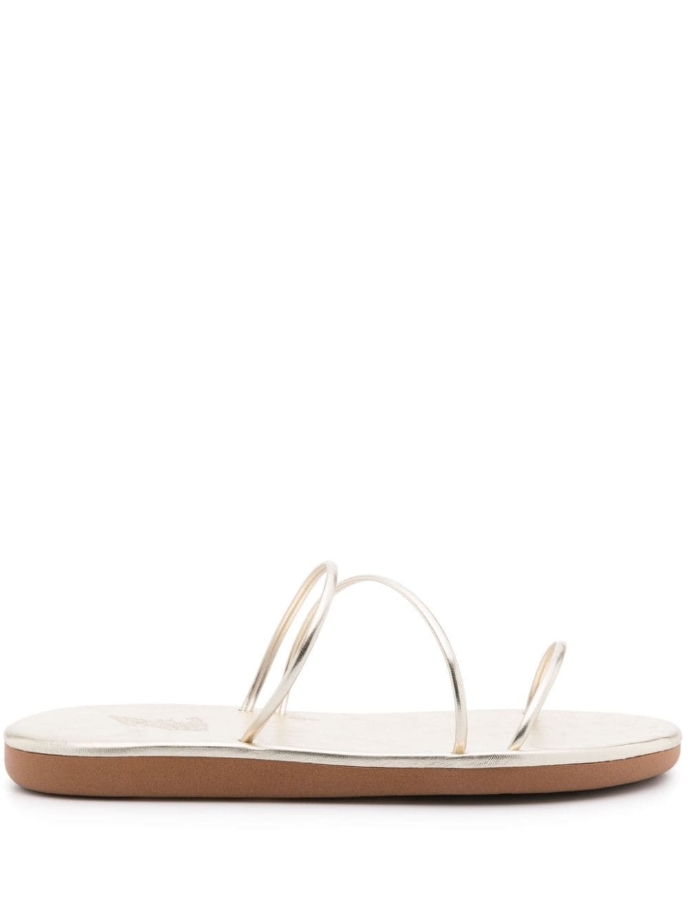 Polytimi leather sandals Highlights - Gold-tone - Calf leather - Smooth grain - Multi-way strap design - Slip-on style - Round open toe - Branded leather insole - Flat rubber sole Imported Composition Leather 100% SIZE & FIT Measurement HEEL 0.7 in(1.8 cm) Sole height 0.62 in(1.6 cm)