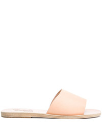 Taygete flat sandals Natural nude leather and bos taurus Taygete flat sandals from Ancient Greek Sandals. POSITIVELY CONSCIOUS: Ancient Greek Sandals scores 3 out 5 by independent ethical brand rating agency Good On You. It manufactures locally to reduce its carbon footprint, uses low impact non-toxic dyes and visits suppliers regularly in its supply chain. Imported Composition Outer: Bos Taurus 100% Lining: Calf Leather 100% Sole: Calf Leather 100%, Rubber 100% SIZE & FIT Measurement Sole height 0.39 in(1 cm) HEEL 0.59 in(1.5 cm)