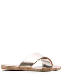 Thais metallic-effect sandals Highlights - Platinum gold - Calf leather - Metallic effect - Branded insole - Open toe - Crossover strap at the toe - Flat rubber sole Imported Composition Outer: Calf Leather 100% Lining: Calf Leather 100% Sole: Calf Leather 100%, Rubber 100% SIZE & FIT Measurement HEEL 0.59 in(1.5 cm)