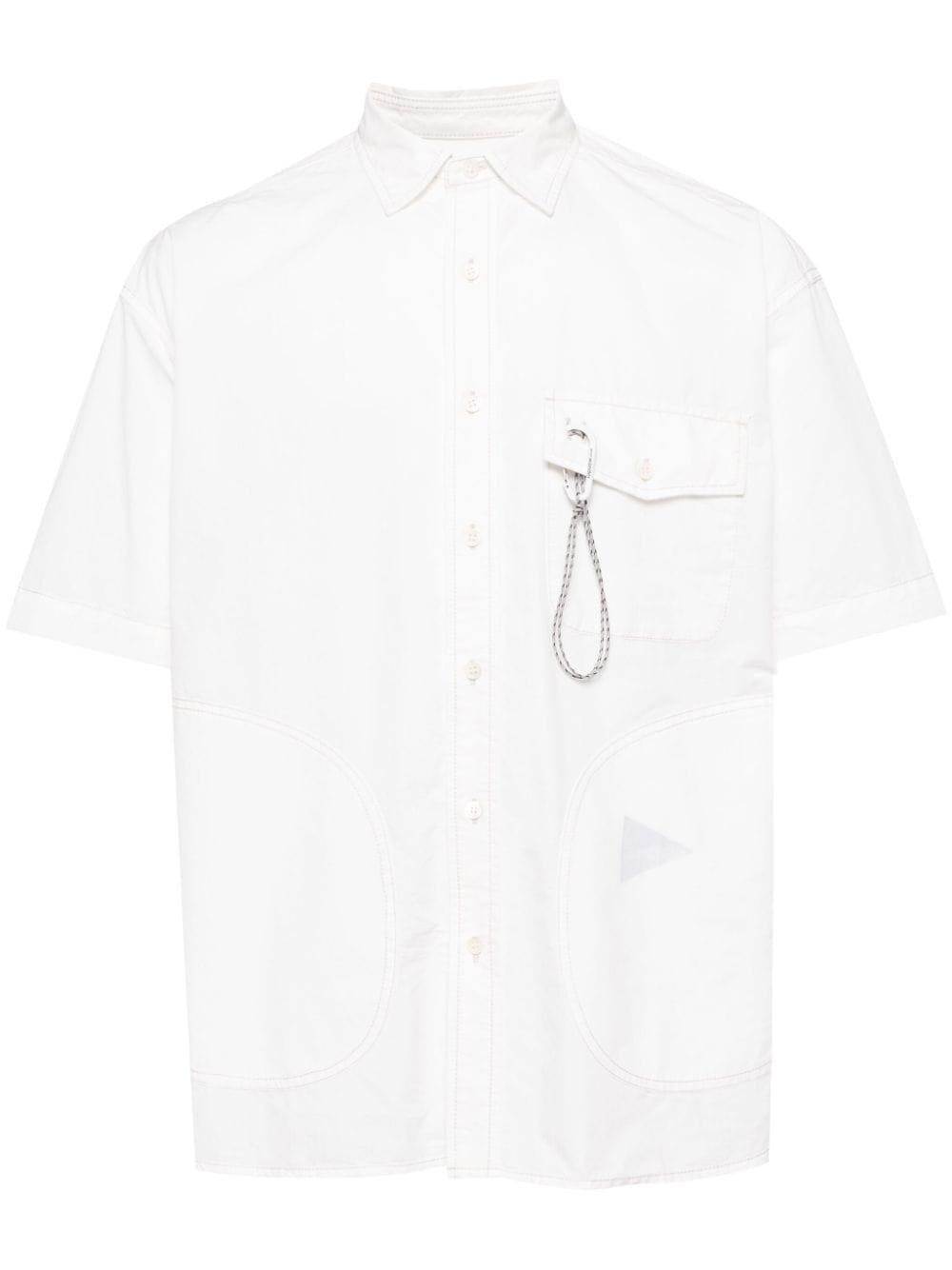 applique-detail short-sleeve shirt Highlights - White - Cotton blend - Poplin texture - Applique detail - Logo-engraved silver-tone hardware - Spread collar - Front button fastening - Short sleeves - Chest flap pocket - Straight hem Imported Composition Cotton 60%, Nylon 40%