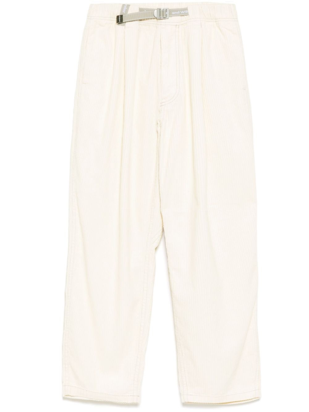 corduroy pants Highlights - Cream white - Front zip fastening - Two side welt pockets - Two rear button-fastening jetted pockets - Detachable and adjustable waist belt Imported Composition Cotton 100% SIZE & FIT Model measurements Height 6 ft 2 in(1.88 m) Bust/Chest 34.25 in(87 cm) Hips 34.64 in(88 cm) Waist 26.77 in(68 cm) FittingInformation Designed for a relaxed tapered leg, allowing a comfortable loose fit above the knee with a closer fit towards the calves The elasticated waist allows for a comfortable fit Made from a heavyweight non-stretch fabric