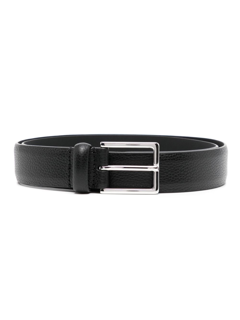 leather belt Highlights - Black - Calf leather - Grained texture - Silver-tone buckle fastening - Pin-buckle fastening - Punched holes - Adjustable fit - This piece is handmade, meaning your purchase is unique and may vary slightly from the item pictured. Made in Italy Composition Calf Leather 100% SIZE & FIT Measurement Maximum Length 37.4 in(95 cm) Minimum Length 33.46 in(85 cm) TOTAL LENGTH 41.33 in(105 cm) WIDTH 1.18 in(3 cm)