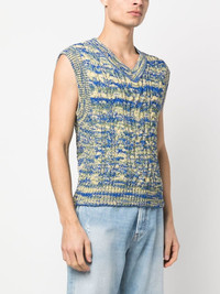 abstract-knit V-neck vest Andersson Bell incorporates a vibrant abstract design in this knitted vest, interrupting the chunky knit construction. Imported Composition Cotton 45%, Rayon 30%, Polyester 25% SIZE & FIT Model measurements Height 6 ft 1 in(1.85 m) Bust/Chest 35.82 in(91 cm) Hips 37.79 in(96 cm) Waist 29.13 in(74 cm) FittingInformation This piece fits true to size. We recommend you get your regular size Cut for a slim fit Made with a mid-weight fabric Washing instructions Dry Clean Only