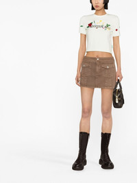 Dasha flower-garden logo T-shirt Constructed from stretch-cotton in an pale mint green hue, this cropped T-shirt from Andersson Bell features a crew neckline, while the floral-printed logo at the front brings a branding-focused finish. Imported Composition Cotton 95%, Spandex/Elastane 5% SIZE & FIT Model measurements Height 5 ft 10 in(1.78 m) Bust/Chest 29.92 in(76 cm) Hips 34.64 in(88 cm) Waist 23.62 in(60 cm) FittingInformation This piece fits true to size. We recommend you get your regular size Cut for a slim fit Made with a mid-weight stretch fabric