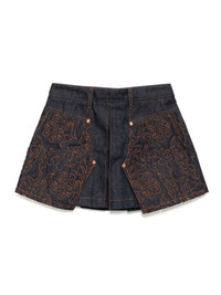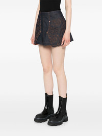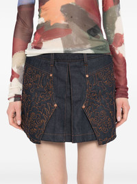 embroidered panelled pleated denim skirt