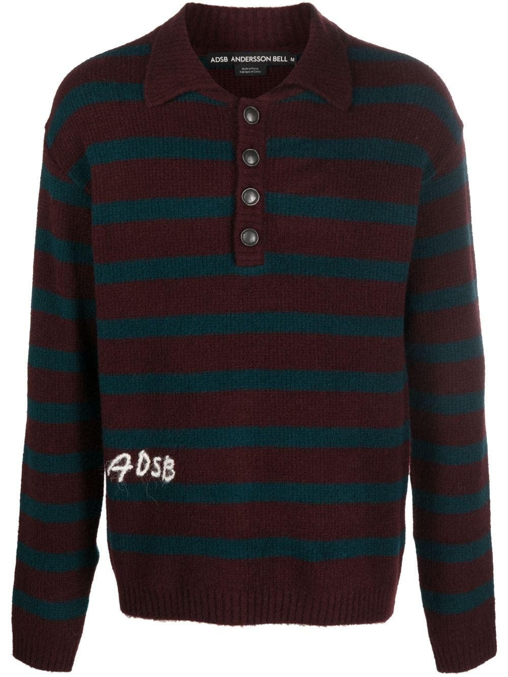 logo-embroidered striped polo shirt Highlights - Wine red/dark green - Embroidered logo to the front - Knitted construction - Horizontal stripe pattern - Polo collar - Front button placket - Long sleeves Imported Composition Acrylic 51%, Nylon 40%, Wool 7%, Polyurethane 2% SIZE & FIT Model measurements Height 6 ft 2 in(1.87 m) Bust/Chest 36.41 in(92.5 cm) Hips 35.43 in(90 cm) Waist 29.52 in(75 cm) Washing instructions Dry Clean Only