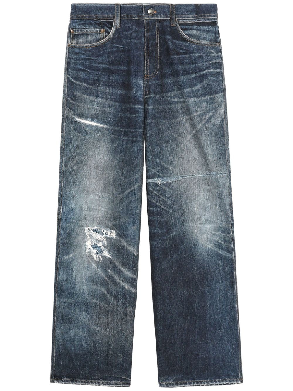 logo-patch wide-leg jeans Highlights - Powder blue - Cotton - Washed denim - Logo patch to the rear - Front button fastening - Belt loops - Classic five pockets - Wide leg Imported Composition Cotton 100%