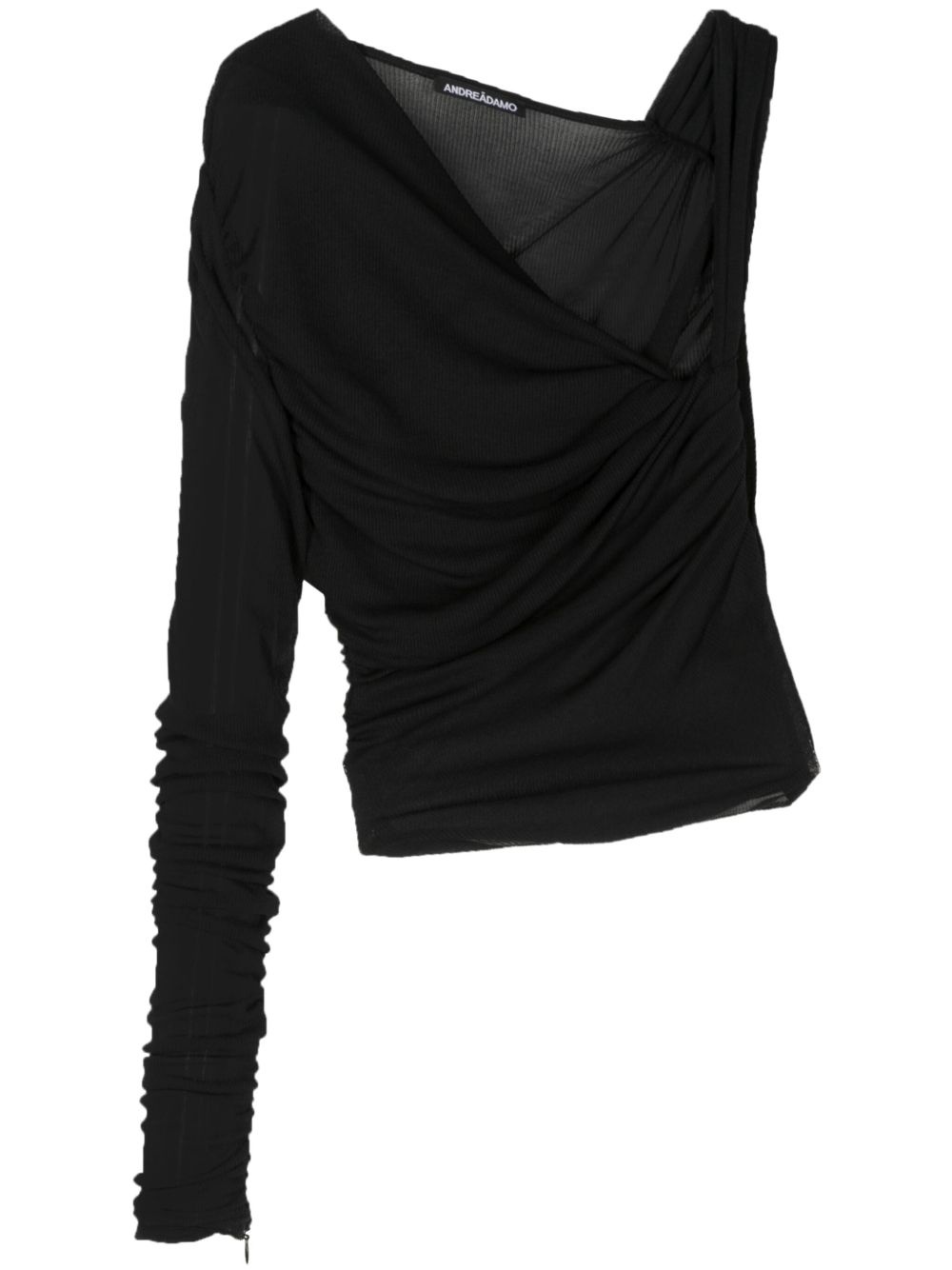 asymmetric ribbed jersey top Highlights - Black - Jersey texture - Fine ribbed - Draped detailing - Twist detailing - Asymmetric neck - Single long sleeve - Asymmetric hem - Cropped Made in Italy Composition Viscose 100% SIZE & FIT FittingInformation Designed for a close fit throughout Cropped in length Made with a fine knit, this piece offers some stretch Washing instructions Machine Wash
