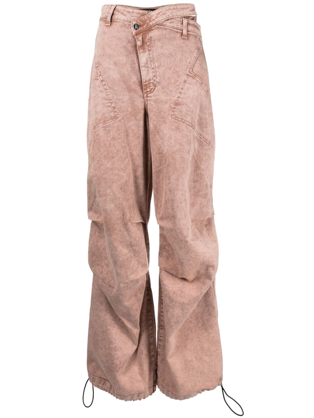 asymmetric-waistband wide-leg jeans Highlights - Light pink - Stretch-cotton - Denim - Mid-wash - Cut-out detailing - Low-rise - Asymmetric waistband - Dart detailing - Concealed fly and button fastening - Wide leg - Drawstring hem Made in Italy Composition Cotton 97%, Elastane 3% SIZE & FIT Model measurements Height 5 ft 10 in(1.77 m) Bust/Chest 31.49 in(80 cm) Hips 35.43 in(90 cm) Waist 25.19 in(64 cm) Washing instructions Machine Wash