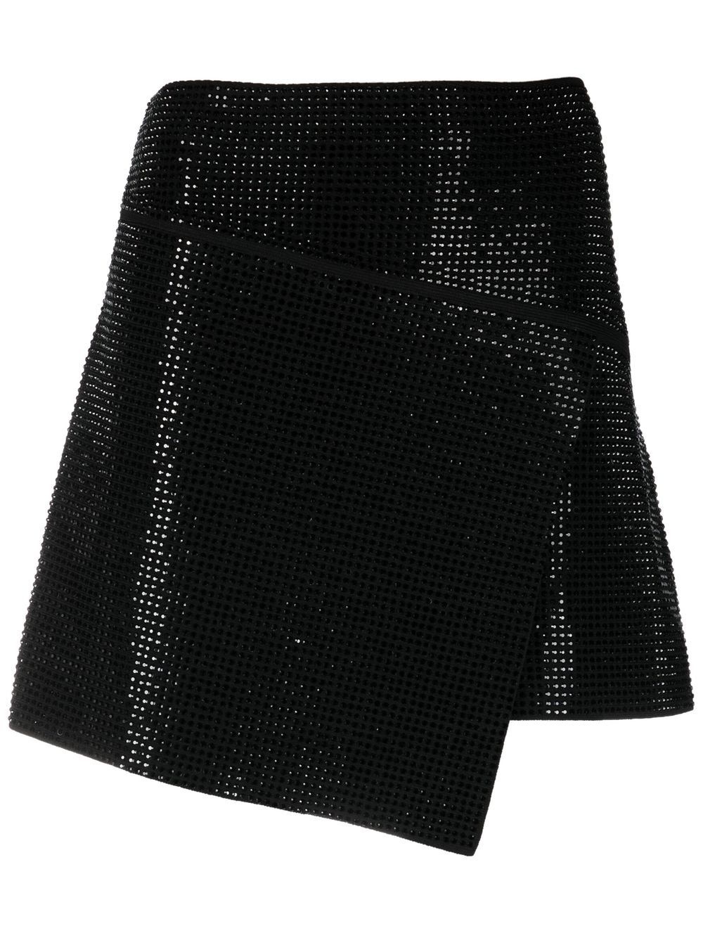crystal-embellished mini skirt Highlights - Black - Knitted construction - Glass crystal embellishment - Asymmetric design - Wrap design - High-waisted - Above-knee length Made in Italy Composition Viscose 44%, glass 43%, Polyester 6%, Other Materials 4%, Aluminium 3% SIZE & FIT Model measurements Height 5 ft 10 in(1.78 m) Bust/Chest 31.49 in(80 cm) Hips 37 in(94 cm) Waist 23.62 in(60 cm) FittingInformation This piece fits large – you might want to get one size down Designed to be fitted at the waist and hips, loose over the leg Made with a heavyweight fabric