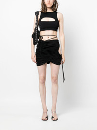cut-out detail asymmetric skirt Highlights - Black - Cut-out detailing - Asymmetric design - Strap detailing - Ruched detailing - Slip-on style - Asymmetric hem Made in Italy Composition Viscose 100% SIZE & FIT Model measurements Height 5 ft 10 in(1.79 m) Bust/Chest 32.67 in(83 cm) Hips 34.25 in(87 cm) Waist 24.4 in(62 cm) FittingInformation This mini-length skirt is intended to be worn just below the waist Made from a midweight non-stretch fabric, this piece offers minimal elasticity when worn This piece fits true to size – take your usual size
